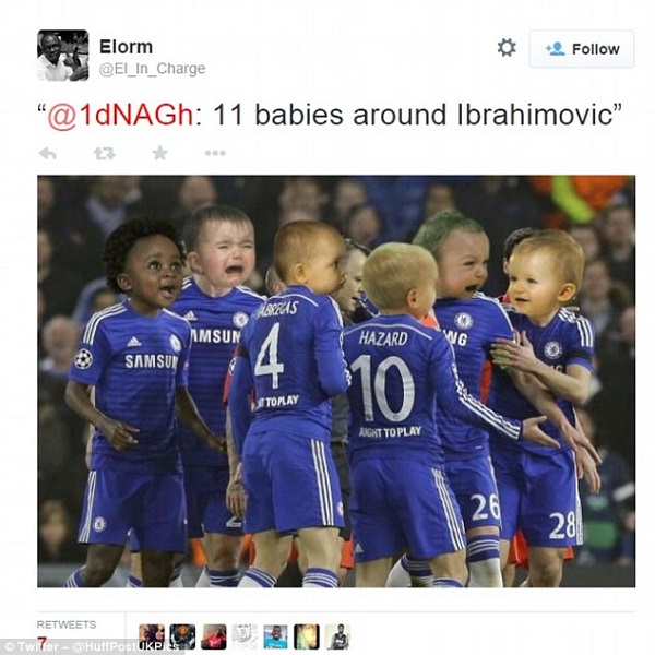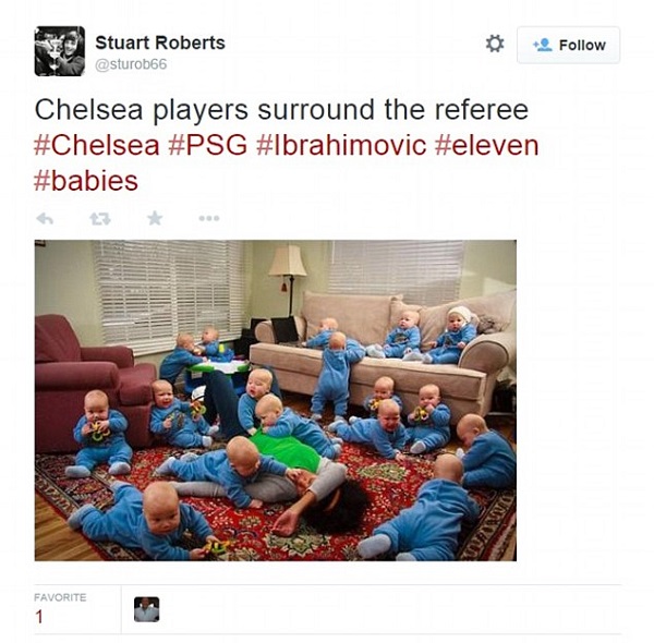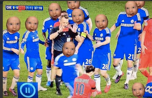 With PSG striker, Zlatan Ibrahimovic, the former Barcelona star having described Chelsea players as ’11 babies’ who went ranting at the referee, here are some of the best memes and tweets trending on social media…