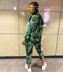 Mummy Jam Jam was one of the few people we saw the tracksuit on. She paired hers with a visor cap and white trainers. Pulling off the busy patterned tracksuit was tricky but she got away with it. 7/10 with 3 bottles of Star Lager.