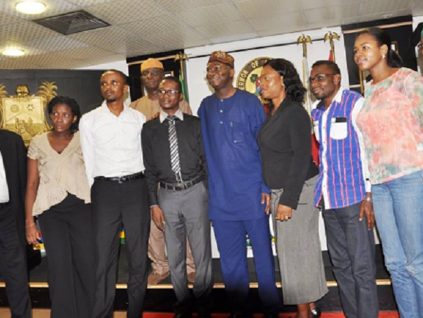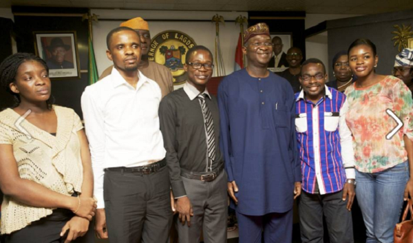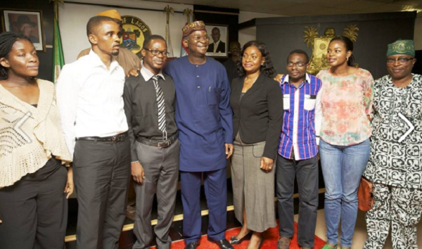 Lagos state Governor,Babatunde Fashola, on September 18,2014, hosted some Ebola survivors in his office at the state Secretariat in Alausa, Ikeja.