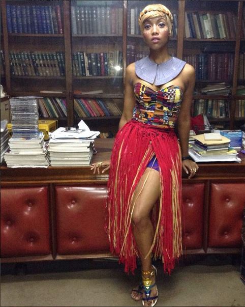 Temi Dollface dressed in an Afrobeat inspired piece for her performance. Photo: Temi Dollface/Instagram
