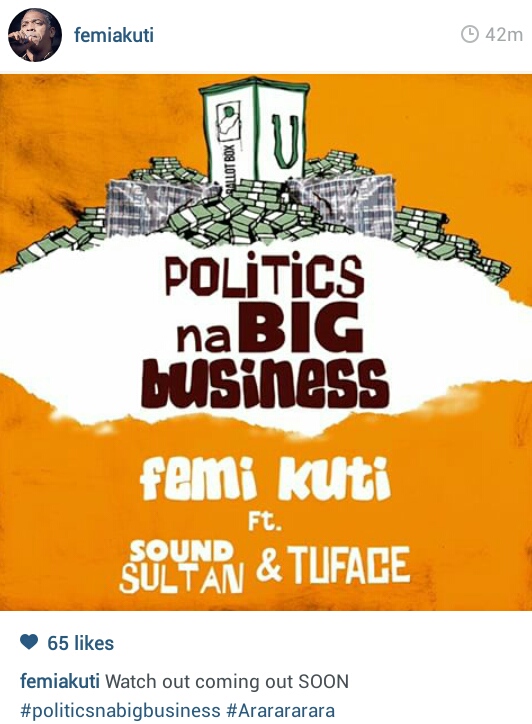 He posted a picture of the said single on his Instagram account, revealing the track is titled: ‘Politics Na Big Business.’