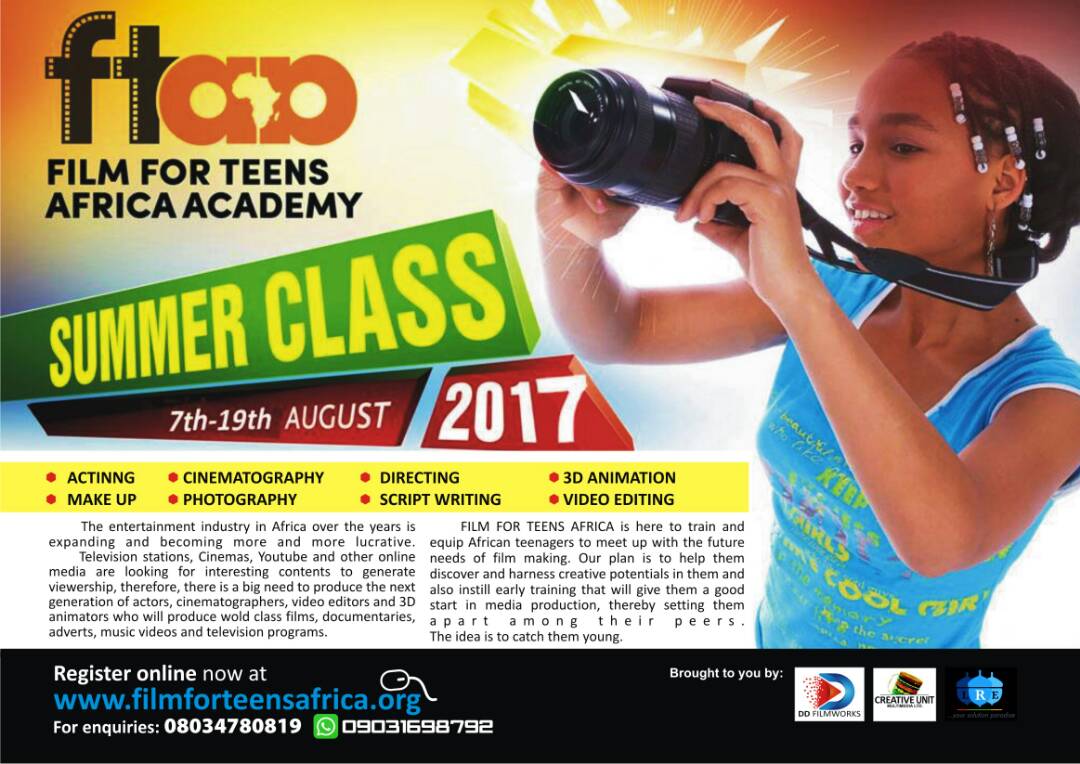 From August 7 to August 19, 2017, Film For Teens Africa Academy will be hosting its first film making summer class for Nigerian teenagers.
