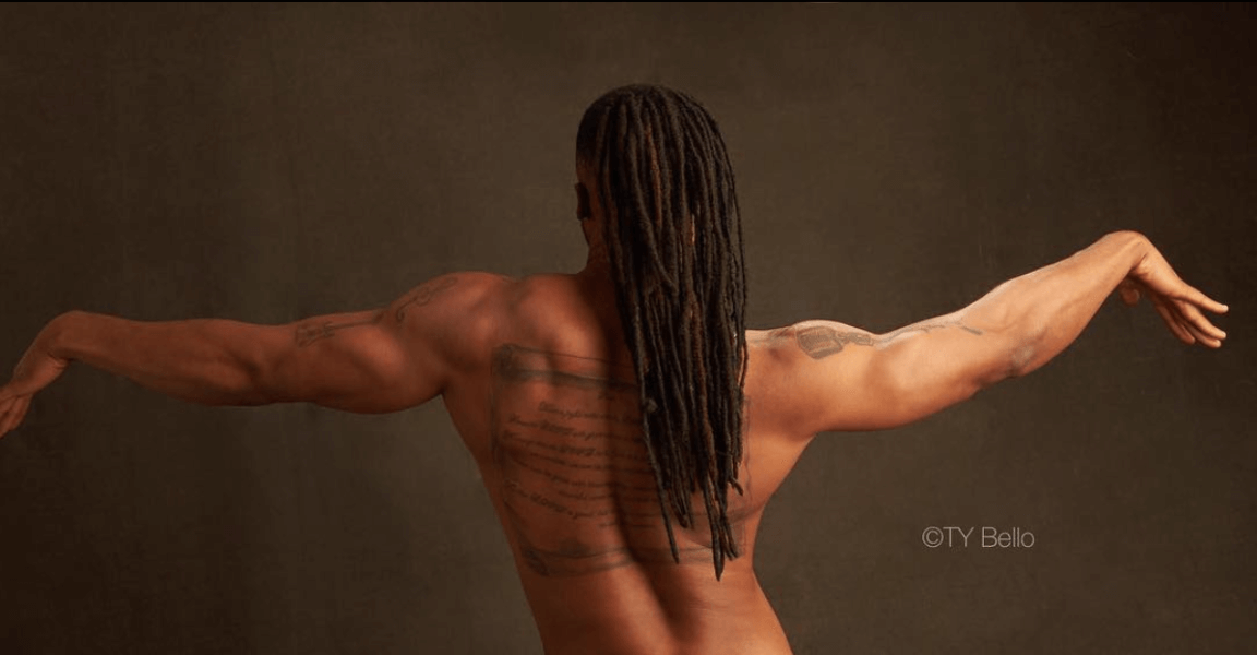 ‘His back tattoo .. Psalm 100..Vrs 1-5 .. one of my favorites. We experimented with movements and dragged the shutter sometimes.