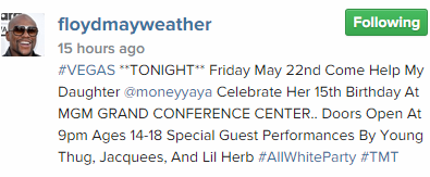 Yet undefeated American Boxer, Floyd Mayweather celebrated the 15th birthday of his daughter Iyanna recently.