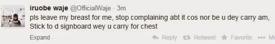 The sensational singer, born as Waje Iroube, expressed her frustration about seemingly unending comments about her boobs today, hitting back at her critics on twitter.