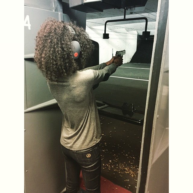 And she didn’t leave it at that; she was also seen practicing the handgun point, shooting effectively.