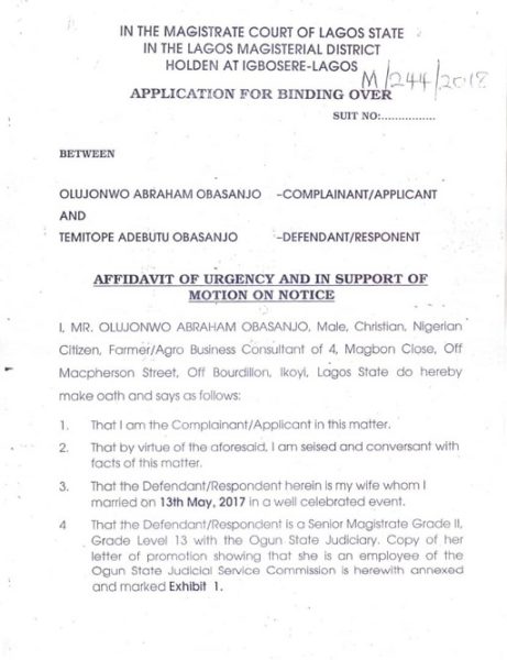 A now fed-up Olujonwo is finally opening up and has officially written to the Ogun state Judicial Service Commission, explaining his ordeal with Temitope. The court summons was recently posted at the entrance of her house.