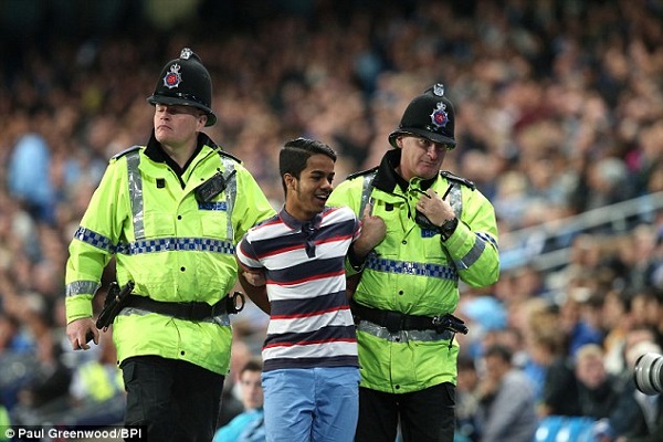 The supporter was eventually whisked away in handcuffs by policemen, for breaching security rules.
