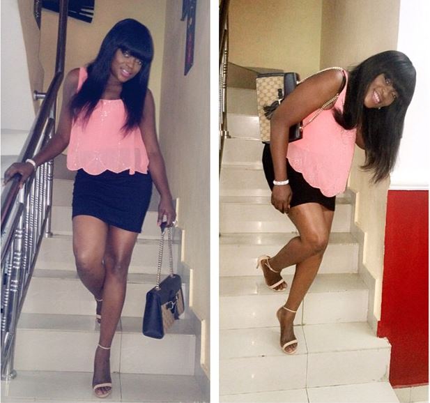 Nollywood actress, filmmaker and producer, Funke Akindele popularly known as Jenifa, was pictured at a hangout in Lagos yesterday, January 1, 2015 looking super hot in a simple pink tank top over a black miniskirt which reveals her long sexy legs.