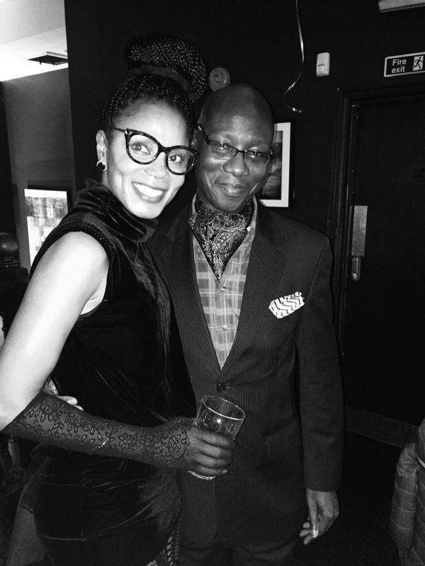 Funmi Iyanda, the well loved TV host took it on, channelling Amal by wearing a sleeveless velvet top and accessorising with her gloves. And unlike Amal’s famous white gloves, Funmi rocked a lacey black to Nigerian gay activist, Bisi Alimi’s surprise birthday party in London yesterday, January 24, 2015.