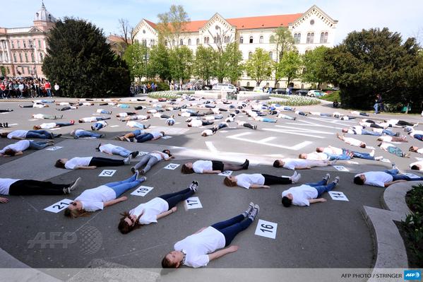 147 students lie down for 147 seconds at Zagreb University, Croatia, in solidarity with victims of #GarissaAttack pic.twitter.com/7FJ2z8hcW8