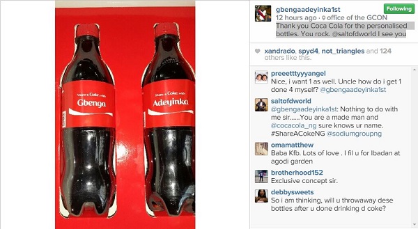 One of Nigeria’s leading comedians and show hosts, Gbenga Adeyinka, has joined other celebrities who have received goodies of the Coca Cola ‘Share a Coke’ campaign as he receives his personalised bottles from the soft drink brand.