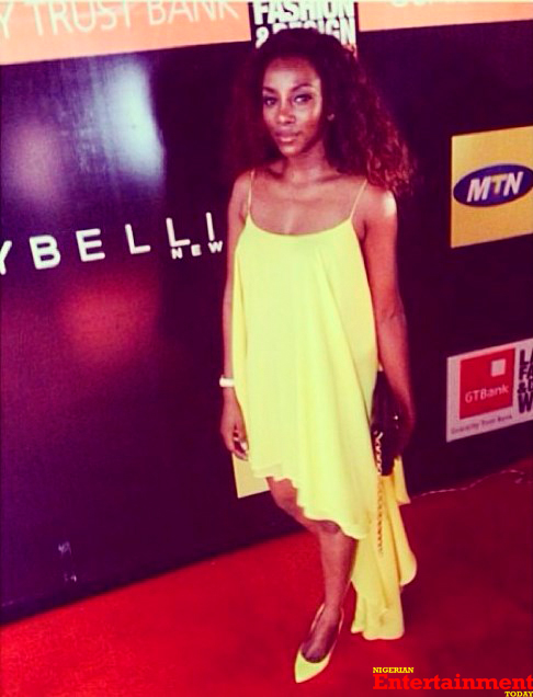 Genevieve Nnaji attended day three of Lagos Fashion and Design Week 2013 dressed in this yellow Bridget Awosika Spring/Summer 2014 dress. Genny’s dress is one of Awosika’s designs on display at the fashion show.