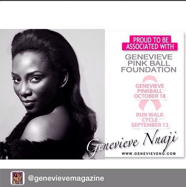 Award winning actress Genevieve Nnaji has been unveiled as one of the celebrities that will participate in the 2014 edition of Genevieve Magazine’s run/walk/cycle for breast cancer.