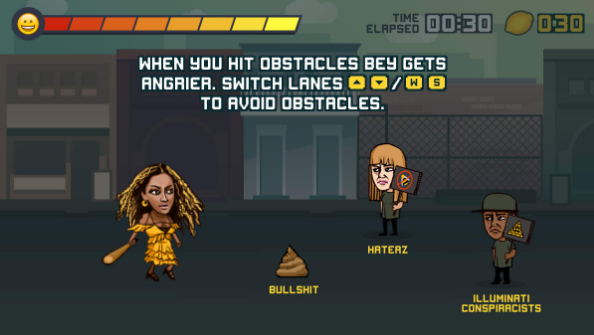 Apparently, Queen Bey’s video for the Lemonade cut ‘Hold Up’ has sparked the idea for Lemonade Rage, a free 8-bit web game that has players control a bat-wielding Beyoncé as she busts up cars, fire hydrants and hair display windows (finally getting back at ‘Becky with the good hair’).