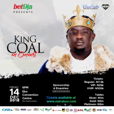 It is implausible that Wande Coal, one of Nigeria’s most talented artistes, has never hosted a musical concert of his own. With a career spanning over 12 years, with numerous awards and achievements, it is without a doubt that the country is eagerly awaiting the first ever Wande Coal standalone concert in Lagos. King Coal in Concert is scheduled to hold on Friday 14th December 2018 and fans cannot wait to be serenaded by the undeniable vocals of King Coal.