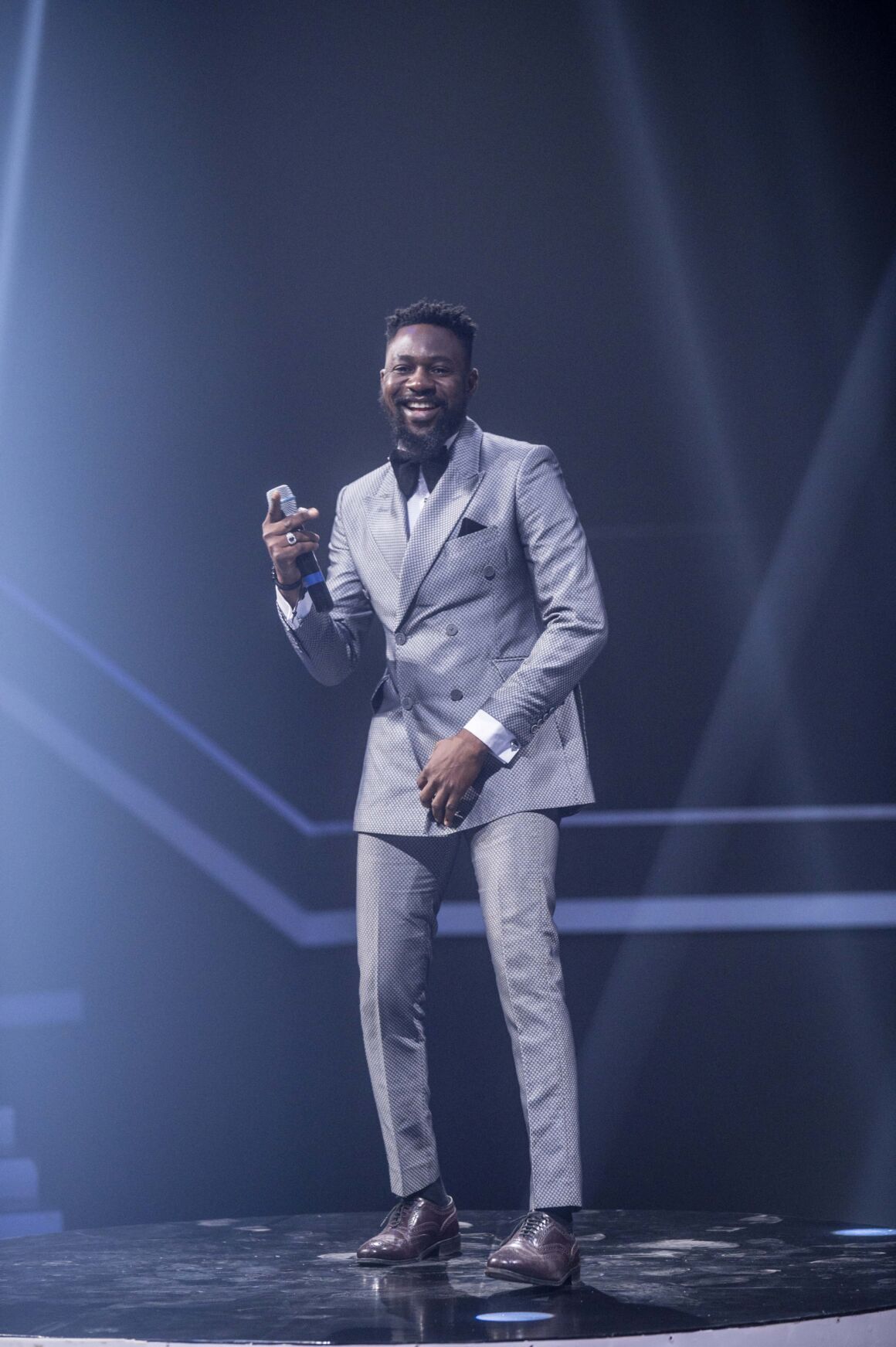 Blue was the colour of the night – Judge Omawumi and the host, Hilda Baci, both looked stunning in their blue ensembles. Hilda rocked a floor-length glittery gown and neutral makeup, while Omawumi opted for a knee-length monosleeve gown, matched with her customary afro. They both looked stunning.