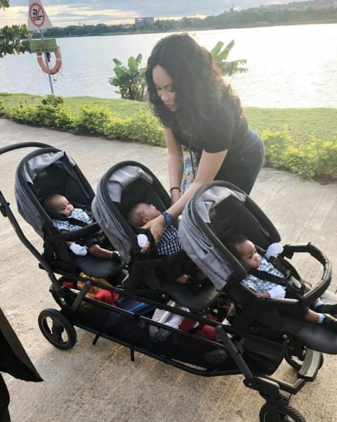 Former Nigerian aviation minister Femi Fani-Kayode who welcomed a set of triplet boys with his wife, Precious in May 2018, has shared on his social media page, new adorable photos of his boys, Aragorn, Liam, Ragnar, Aiden, and wife in what seemed to be an outing.