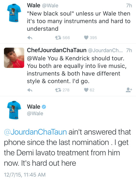 Maybach Music Group’s Wale went to Twitter to express his own issues about his name being left out of the Grammy conversation. That led to a fan suggesting he and Kendrick Lamar should go on tour together. Wale responded by claiming Kendrick stopped taking his calls after the TDE emcee received his previous Grammy nominations.