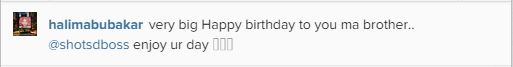 Nollywood actress, Halima Abubakar today took to social media to celebrate with Afrobeat artiste Seun Kuti who turned a year older today, January 11, 2015.