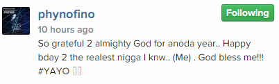 The rapper has enjoyed goodwill messages from his fans and fellow artistes world over, with notable showbiz stars who wished him Happy Birthday including Chidinma, Olamide, IllBliss, Lil Kesh, P Square, Jude Okoye, M.I Abaga.