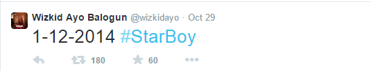 Writing: ‘1-12-2014 #StarBoy,’ Wizkid might have made it known he will officially kick start projects under his own label on December 1, 2014 and his new album might just drop before the year ends.