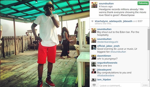 The big news was disclosed by Sound Sultan who couldn’t keep the excitement to himself. He took to his Instgram page on Saturday, January 3, 2015, to thank fans and lovers of the movie with the caption: