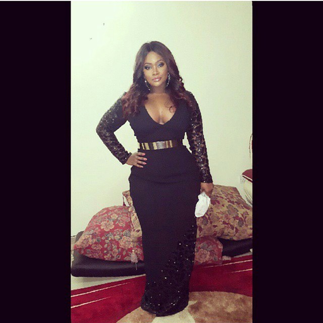 Beverly Naya stunned in a blue two-piece spaghetti dress designed by Gozelgreen while Toolz wore a black long-sleeve plunge-necked dress revealing some cleavage. She looks like an hour glass as always.