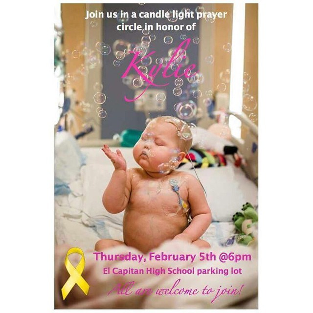 Since then, she has struggled on in the fight having experienced different but surely massive changes in her body. Yesterday, February 5, 2015, a candle light prayer circle was held in honour at E! Captain High School in Lakeside, California as family, friends and associates of her parents came together to offer words of prayer for little Kylie.