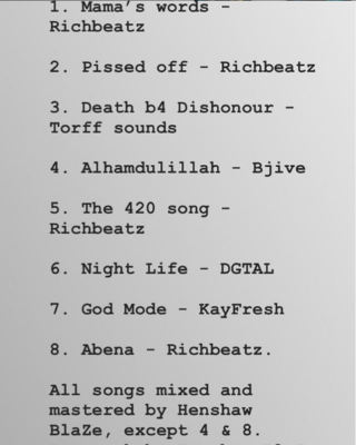 The 8 track album, production credits go to Richbeatz, Kayfresh, DGTAL and Torrfsounds. The album was mixed and mastered by Henshaw BlaZe. Do you think the album can deliver on its claim?