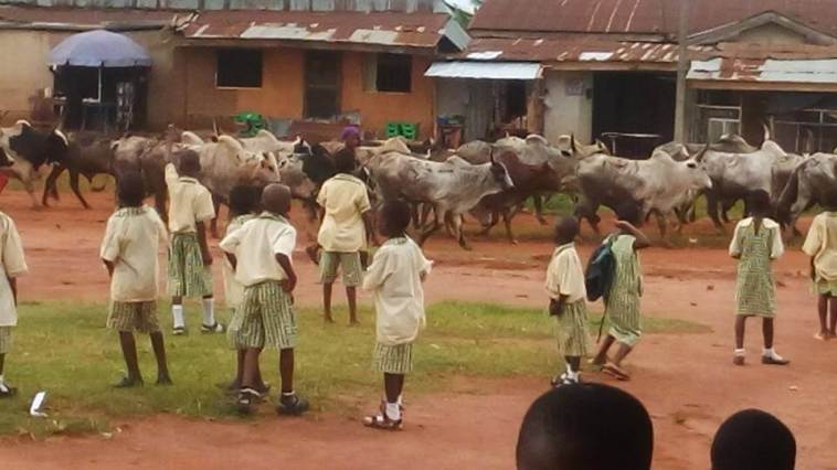 Some herdsmen have led their cattle into Ohovbe Primary School Ikpoba, in Okha Local Government Area of Edo State.