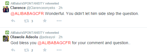 At the event, the president gave room for a question and answer session, and only Ali Baba’s question got all the buzz. Alot of people were not at the event, and alot of people missed it live on tv as well, so the big question online now is ‘what did Ali Baba ask the President?