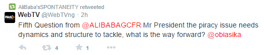 The topic of Ali Baba’s question to the president has been a trending issue online in the last 3 hours, so we thought to let you know exactly what his question to the president was. The comedian asked the 5th question and his question was, ‘Mr President the piracy issue needs dynamics and structure to tackle, what is the way forward?.