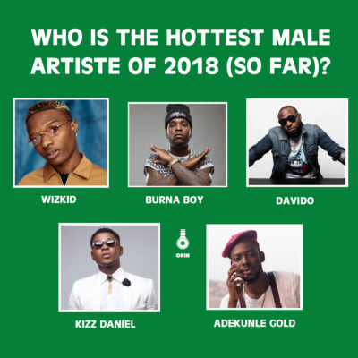 The year has seen the release of a lot of hot records and laudable achievements by Nigerian musicians. Although we celebrate all our boys, we’d like to know; who do you the think is the hottest male artiste of 2018 so far?