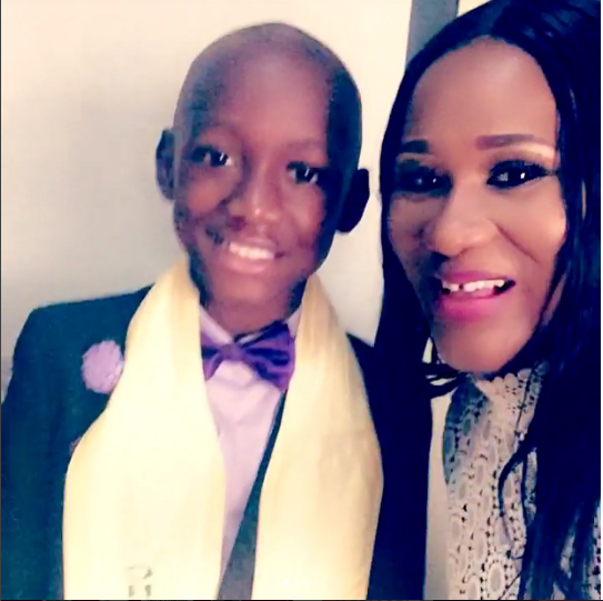 Innocent Idibia popularly known as 2Face and his wife, Annie Idibia joined his baby mama, Sunmbo Adeoye to support to their son, Nino, who graduated Middle School.