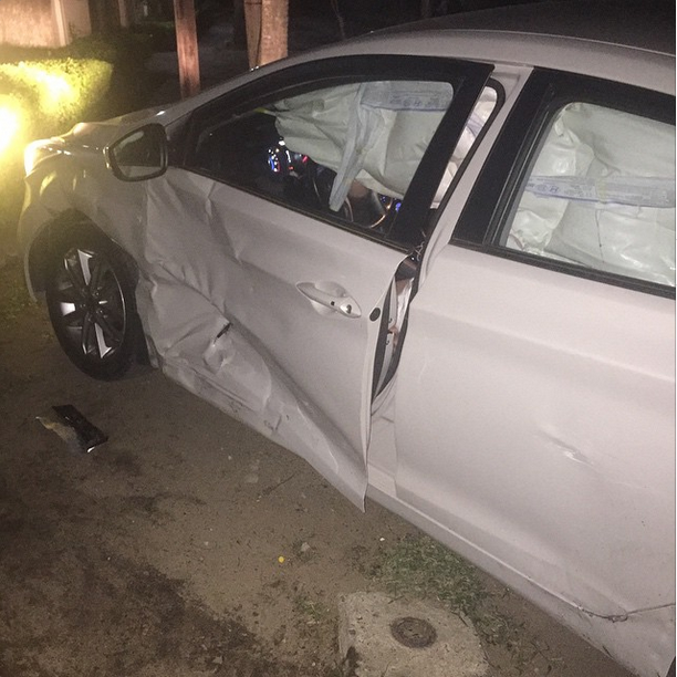 According to the funny man, a vehicle ran into him at an intersection, dumping his car by the road side as a result of the crash.