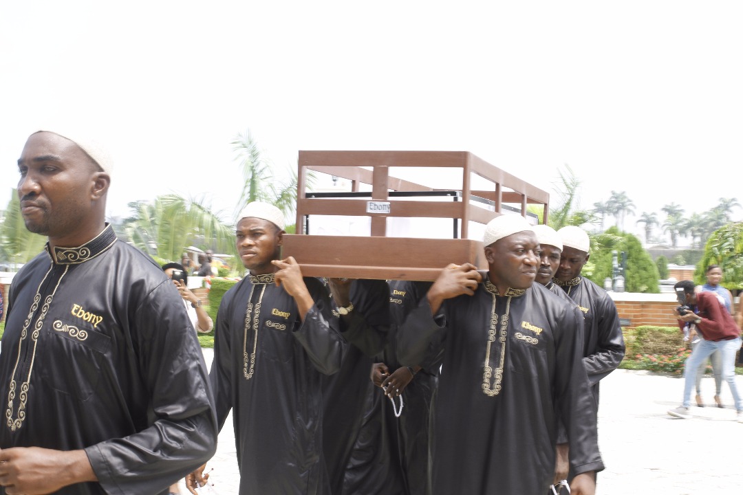 Six men dressed in black kaftan carried her remains which was wrapped in a white cloth and placed in a wooden see-through box.