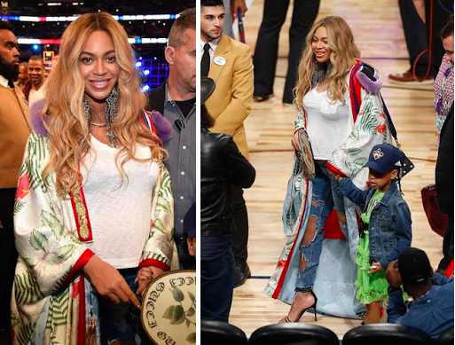 Expectant mother of twins, Beyonce along with her husband Jay Z and daughter Blue Ivy stepped out to watch the 2017 NBA All Star Game at the Smoothie King Center in New Orleans yesterday.