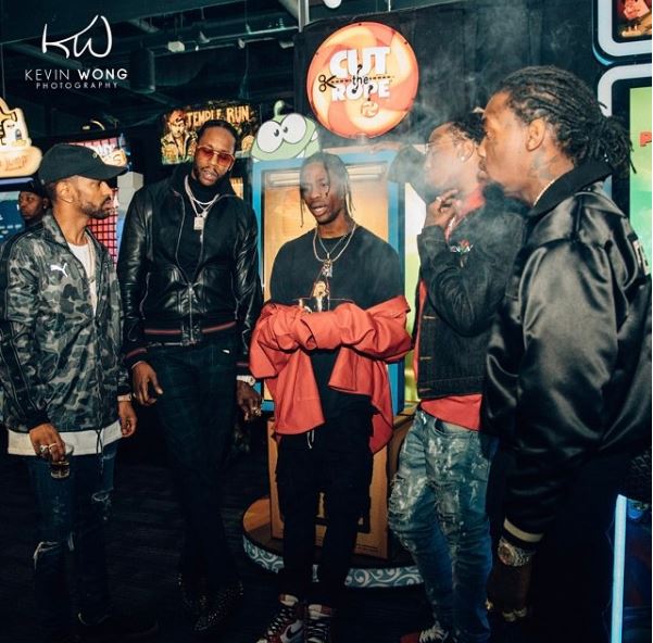 The flicks show Sean Don shooting hoops, Travis Scott having a dance-off against Quavo, and the birthday boy aiming a toy gun.