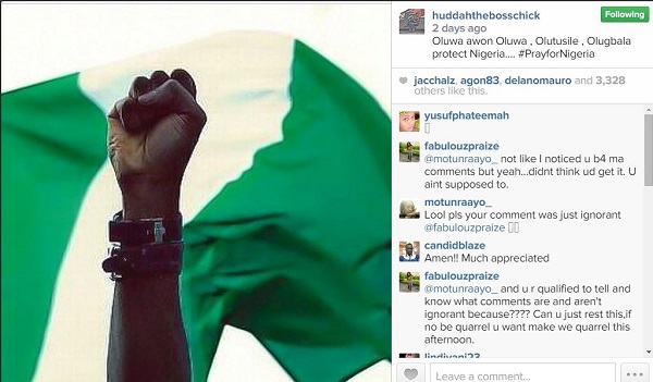 With 2015 general elections in Nigeria fast approaching, several celebrities are campaigning for a peaceful election and the former BBA rep took to her Instagram account on Tuesday, January 13, 2015 to post a picture of Nigeria’s flag.