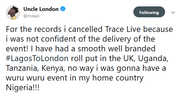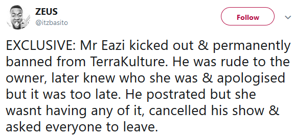 Banku Music pioneer, Tosin Ajibade aka Mr Eazi, was reportedly sent out and banned from art centre, TerraKulture, in Lagos yesterday November 23rd where he was supposed to have a concert to promote his recently released ‘Lagos to London’ Mixtape.