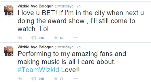 Via a number of tweets late Monday, Wizzy made his points known, concluding however that he’s got nothing but love for BET. NET gathered that what riled organsiers of the award even more is Wizkid’s refusal to show up despite being in Los Angeles for the weekend.