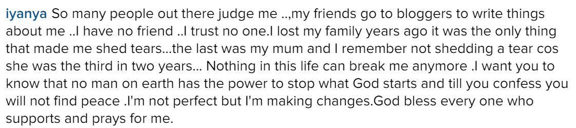 He also went on to narrate how tough he’s grown and the fact he trusts no one and has no friend.