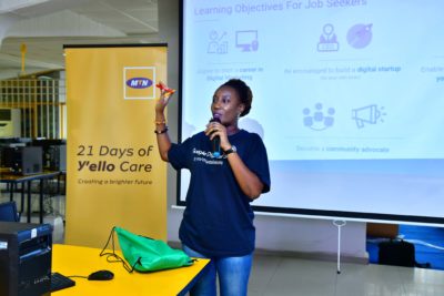 The project Manager, 21 Days Of Y’ello Care, 2018, MTN NIgeria, Victor Orie-Ononogbu introduced the ICT training session and soon the Programme Manager and Trainer, Konverge Media, Vanessa Morris, started the Google class. There was so much to learn….