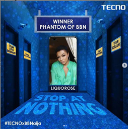 But wait, there’s more. TECNO fans online were asked to show their love and vote for their favorite male and female housemates, with impressive performances during the TECNO task. The 2 housemates, one male and one female, with the highest votes would each be crowned with the title PHANTOM of BBN and also win 200,000 Naira each. Wow, isn’t it! After intense voting, Whitemoney and Liquorose claimed their titles.