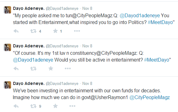 D1, who is one of Nigeria’s leading entertainment personalities who have recently declared their intention to become involved in politics, held a Twitter media chat to engage his fans and address some issues regarding his role in entertainment as well as his planned sojourn in politics recently.