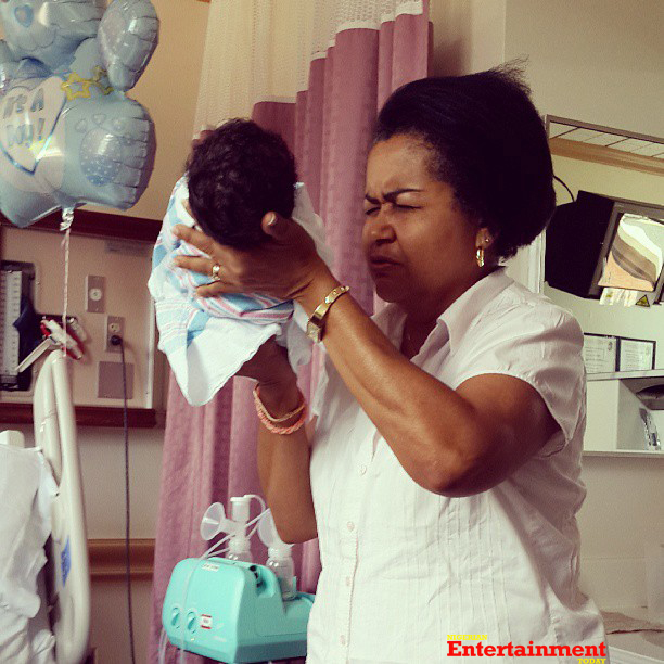 The R&B singer’s sister delivered a bouncing baby boy a few days ago and Banky who’s on vacation in the US was there to welcome the tot. ‘Uncle Banky and Nephew 🙂 #family #newborn #theBoyFiiiiine‘, Banky wrote as he posted the photos.