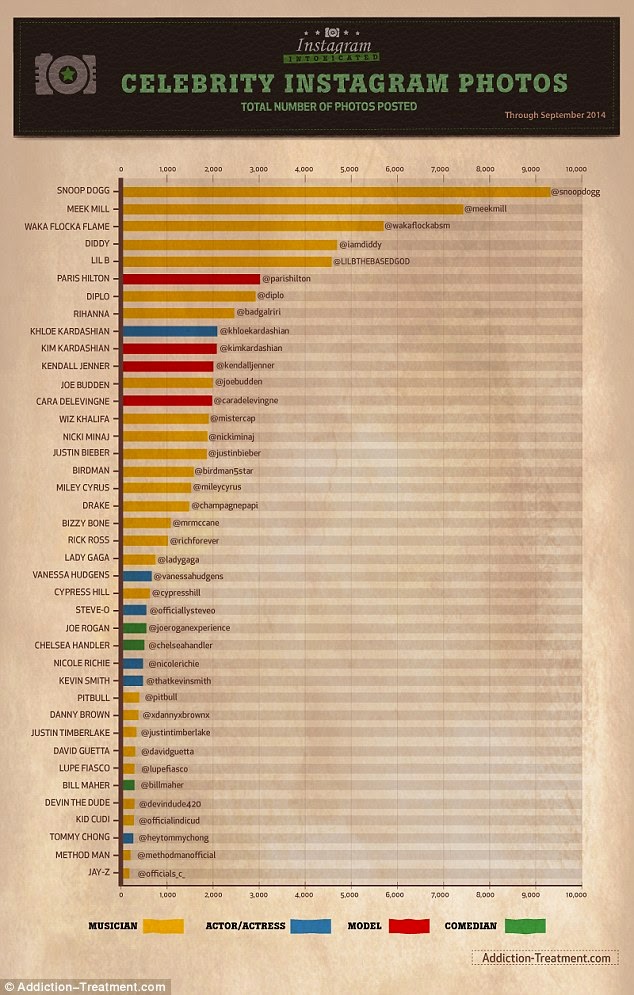 According to reports, data compiled by addiction website, Addiction-Treatment.com, reveals that the 43-year old has posted more images than any other famous person currently using the app, including selfie queens Kim Kardashian and Paris Hilton.