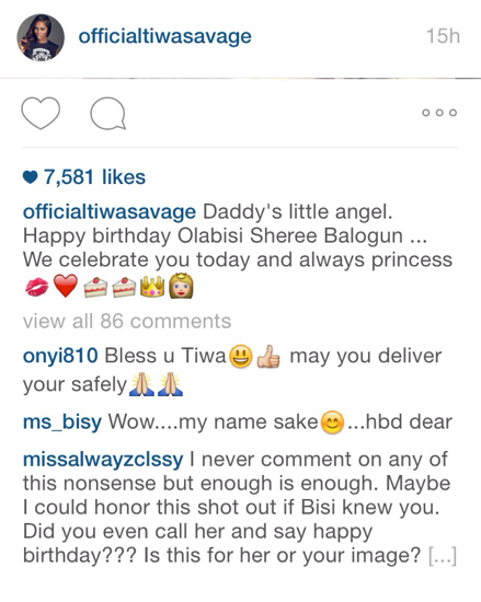 ‘I never comment on any of this nonsense but enough is enough. Maybe i could honor this shot out if Bisi knew you. Did you even call her and say happy birthday? is this for her or your image?’