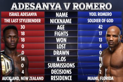 The first two rounds were uneventful, with Romero stationary, waiting for Adesanya’s usual blitz attack so he could find an opening to counter.